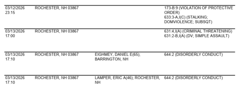 Rochester Police Arrest Log for March 12-13